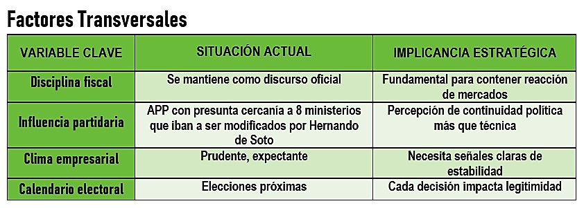 En este escenario de aprobación, la PCM tendría que enfocarse en cuatro ejes claros. Primero, garantizar absoluta neutralidad electoral, evitando cualquier señal de instrumentalización institucional. Segundo, blindar al Ministerio de Economía y Finanzas y al Banco Central de eventuales presiones políticas, manteniendo disciplina fiscal y estabilidad monetaria. Tercero, reducir al mínimo los cambios ministeriales que refuercen la percepción de reparto partidario. Y cuarto, establecer una narrativa coherente de transición ordenada hacia las elecciones.
